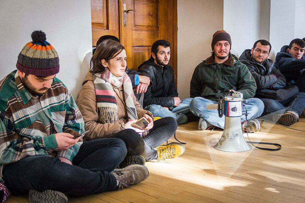 Активисты студенческого движения "Аудитория 115" пикетируют избирательные участки в главном корпусе Тбилисского государственного университета им. Иване Джавахишвили. sputnik-georgia.ru »