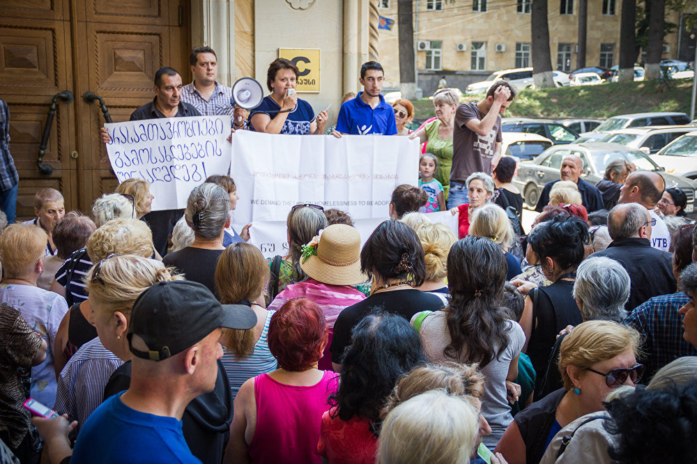 Не выселять семьи, имеющие долги по ипотечным кредитам, до принятия законопроекта о социальных гарантиях для бездомных потребовали участники сегодняшней акции в столице Грузии.